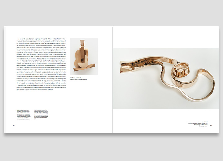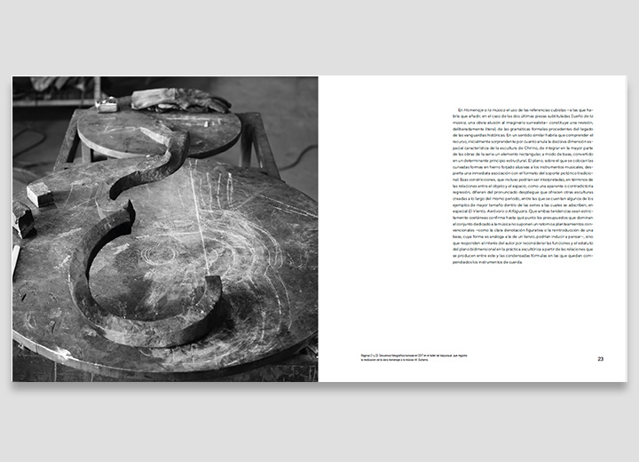 Jointly edited by the Fundación de Arte y Pensamiento Martín Chirino and the Azcona Foundation, this third volume of the Encyclopaedia of the Canarian artista ‘Tribute to music. The sonority of matter’, has been written by David Cortés Santamarta, professor of Aesthetics and Theory of Art at the Universidad de La Laguna School of Fine Arts. The book The books is telling of the sculptor’s sharpened sensitivity for music, but also of his special interest in a field to which he devoted a set of works from 1995 to 2019. Consisting of eight pieces, plus a ninth that was never finished, the series arises “from speculations about analogies between art and music, which, in turn, stem from the creation of a kind of genealogy of the relationships that these disciplines have had throughout modernity.”
